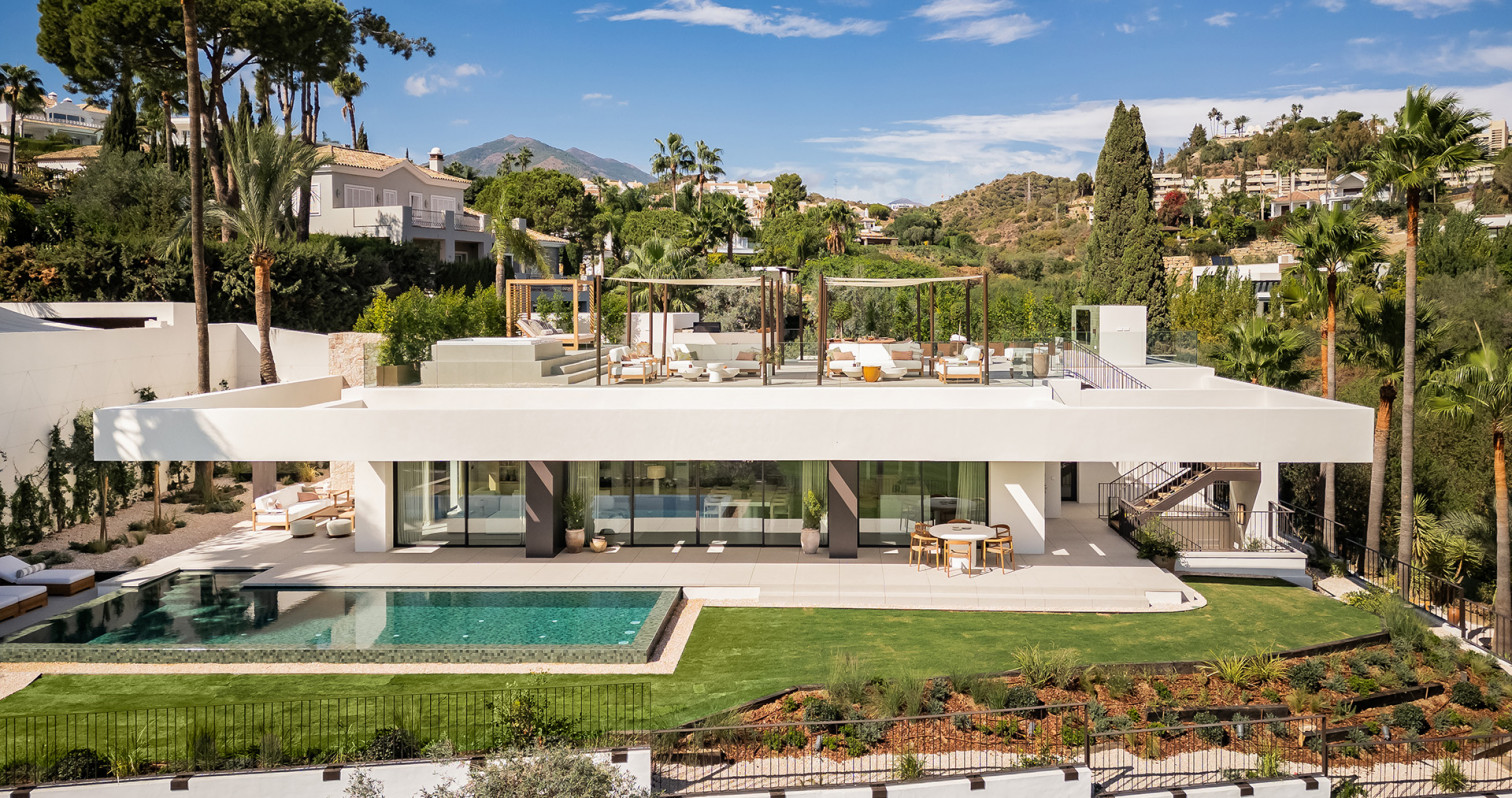 Nestled within the exclusive gated community of Parcelas del Golf, Casa Piemonte combines refined design, natural beauty, and a prime location. Just a short stroll from renowned restaurants, boutiques, and the beach, this villa offers the perfect balance of privacy and convenience. From the moment you step inside, you are welcomed by a sense of harmony and sophistication. The open-plan layout seamlessly integrates the kitchen, dining, and lounge areas, with expansive sliding glass doors that disappear into the walls to create a fluid transition between indoor and outdoor living. This level also features a stylish en-suite bedroom for guests. The outdoor spaces are designed for relaxation and entertaining. Beside the pool, a charming gazebo hosts a fully equipped outdoor kitchen, dining, and lounge area—all surrounded by lush, landscaped gardens. Upstairs, you’ll find three elegant en-suite bedrooms. The master suite is a private retreat, complete with a walk-in closet, luxurious bathroom, and a private terrace with its own jacuzzi. The lower level is dedicated to leisure and lifestyle. It boasts a playroom, TV lounge, bar, gym, and sauna, as well as two additional en-suite bedrooms and a home office. Casa Piemonte is more than a villa, it’s a sanctuary where modern luxury meets Mediterranean charm.