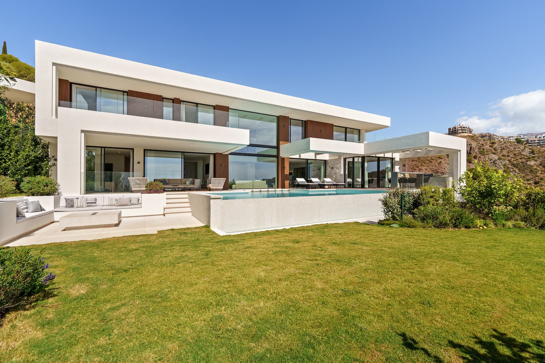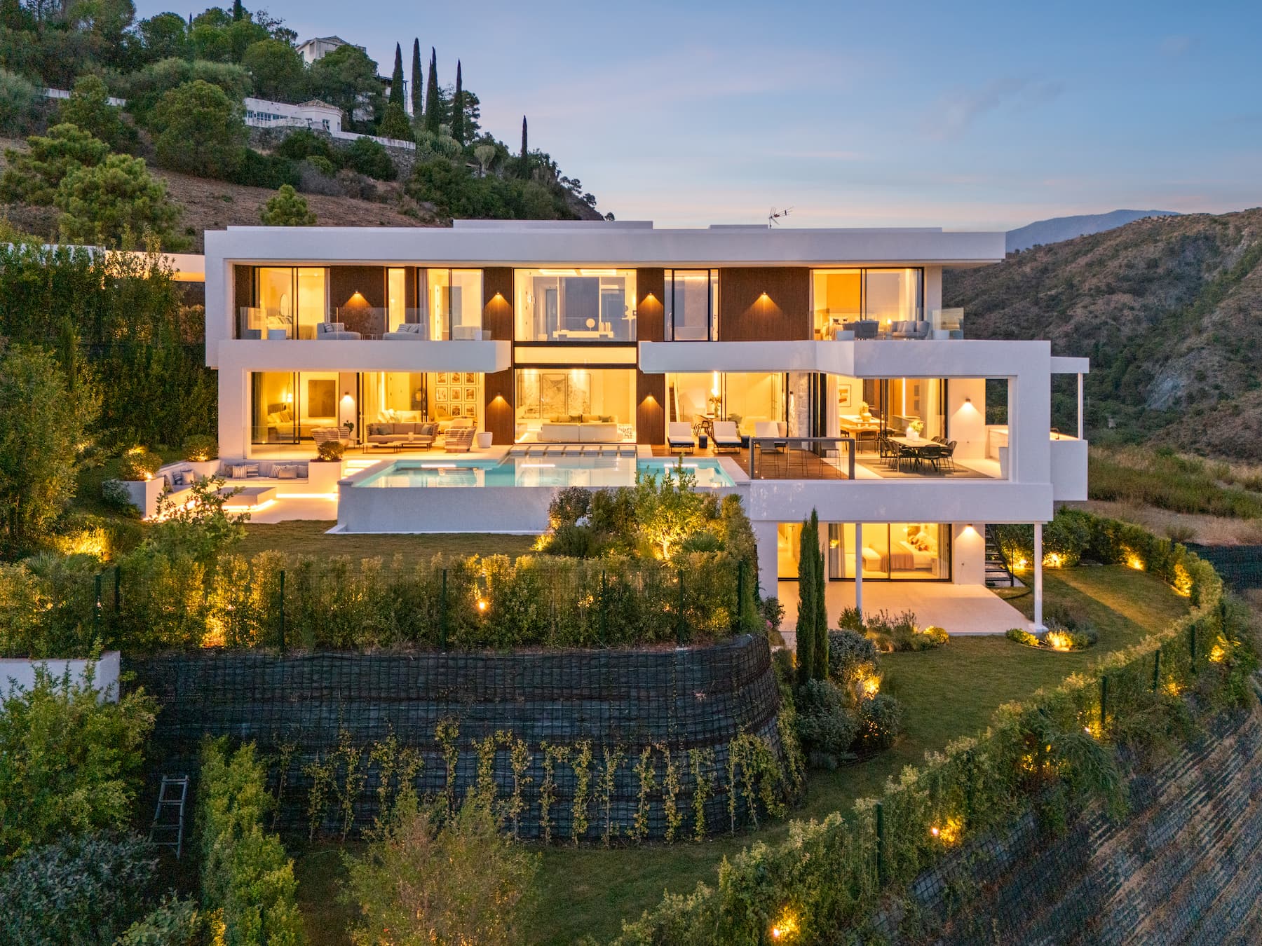 La Quinta 20 is an outstanding modern luxury villa located in the exclusive gated community of Lomas de La Quinta in Benahavís. Positioned on an elevated 1,579 m² plot, the home offers 636 m² of built space, 145 m² of terraces, and a south-facing orientation, ensuring abundant natural light and panoramic views of the Mediterranean and surrounding mountains.