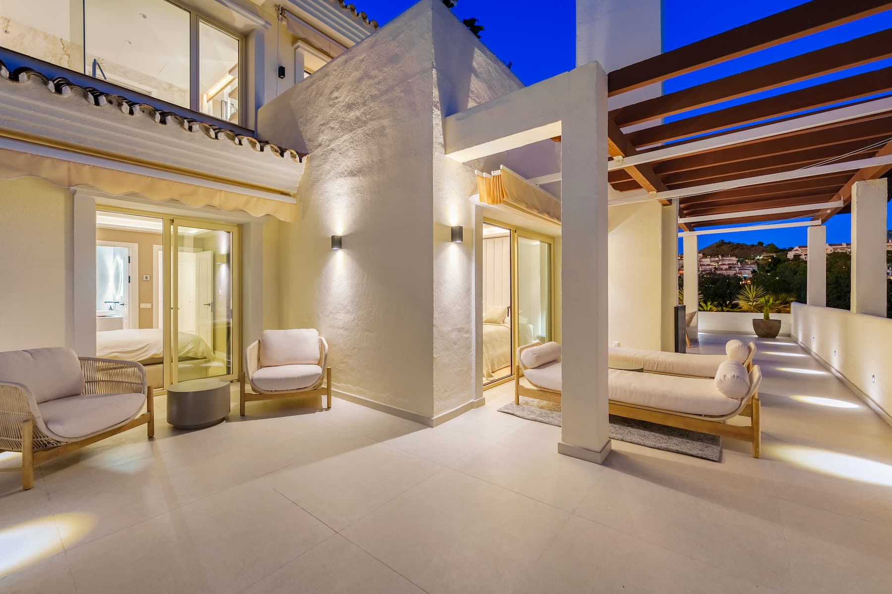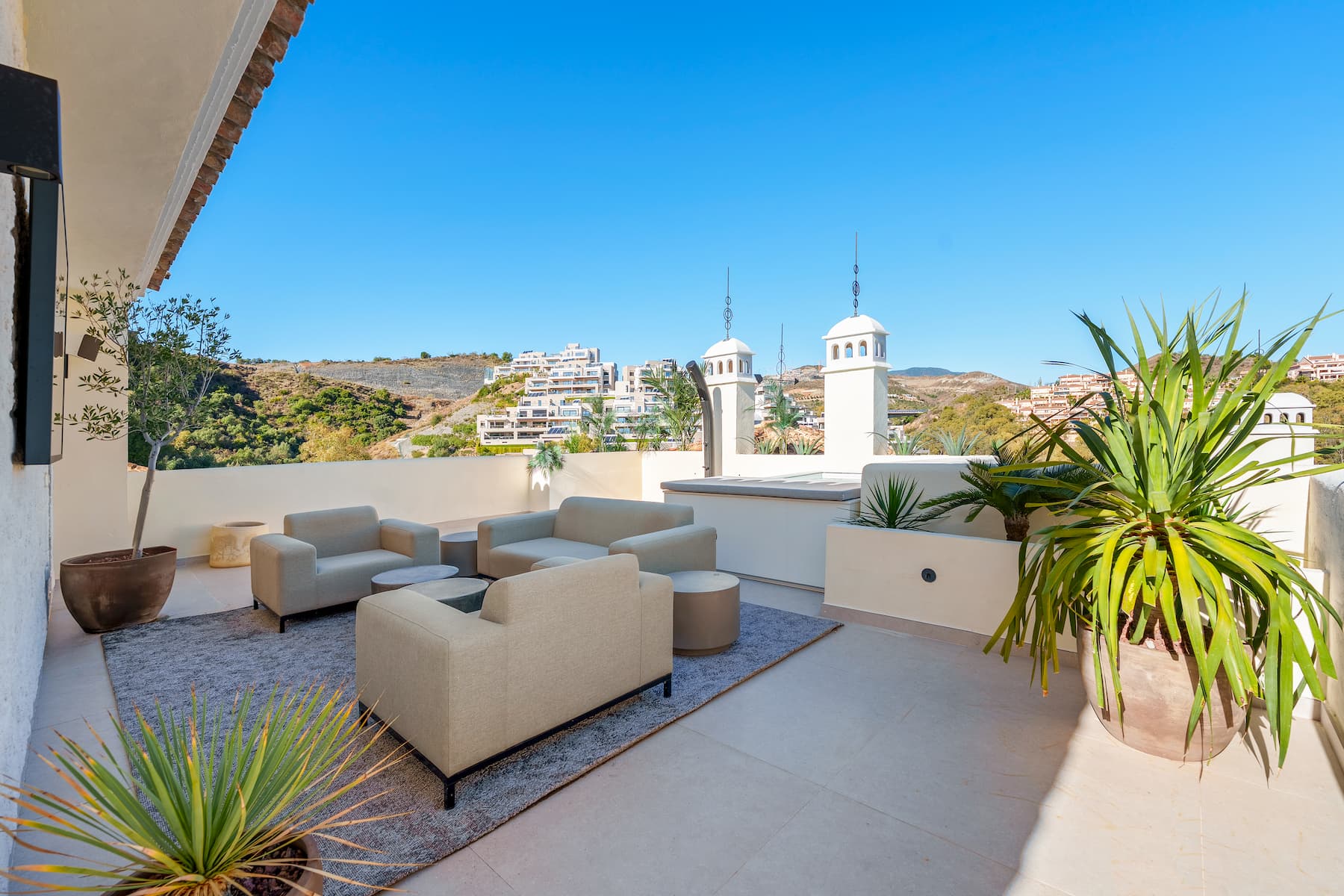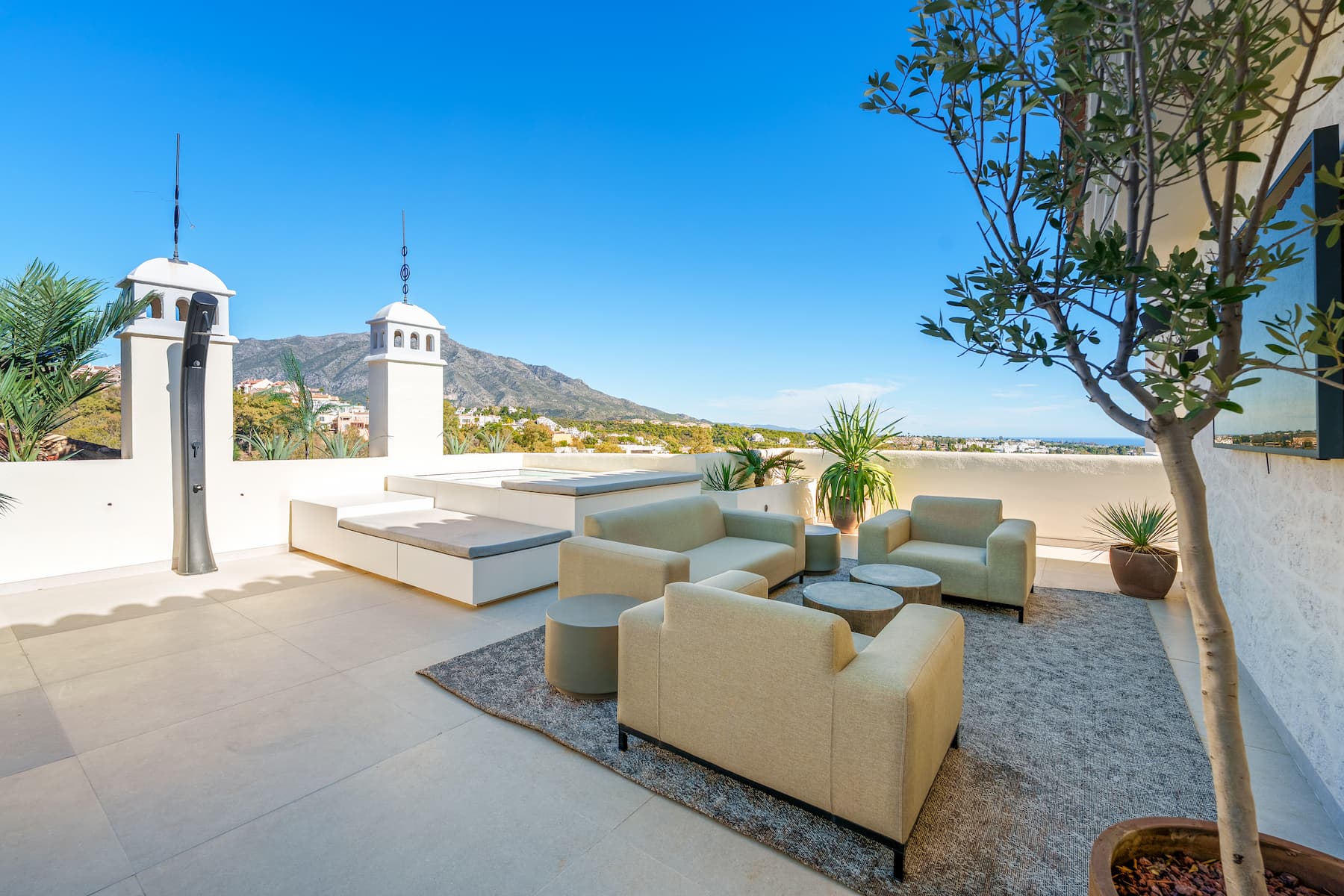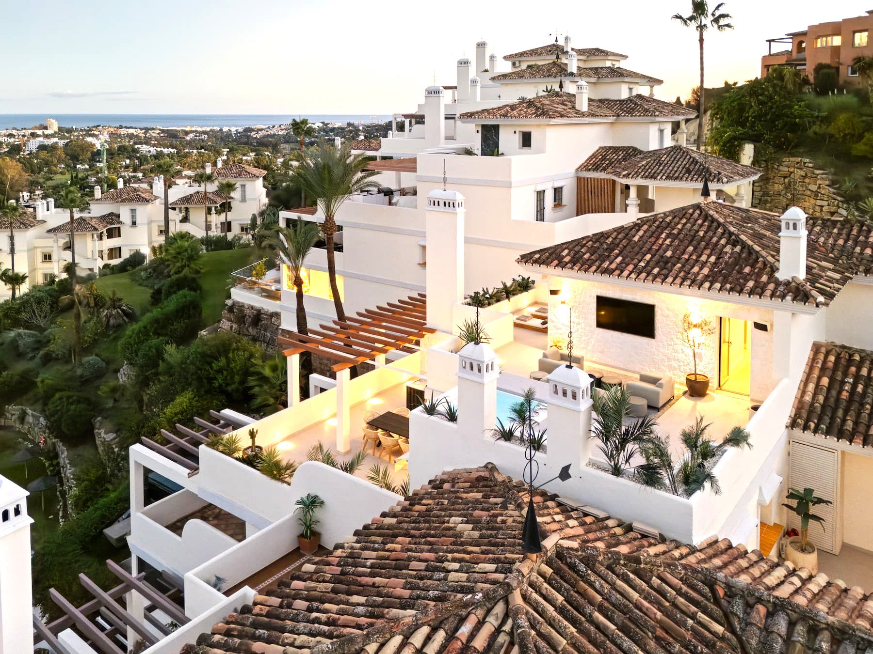 Upstairs, residents enjoy a private pool and expansive terraces offering panoramic views of the sea, lake, and mountains — making this an exceptional residence for those seeking exclusivity on the Costa del Sol.