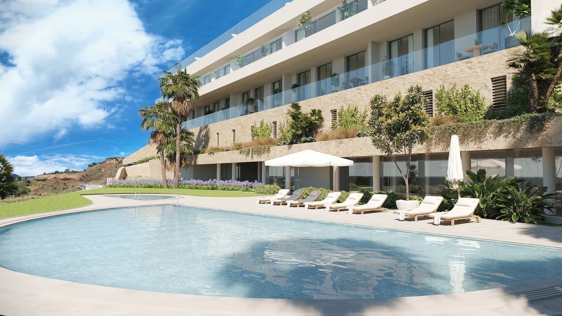 The residential complex offers a full lifestyle experience with swimming pools, spa, gym, coworking space, and 24-hour security, all within a private and exclusive environment.